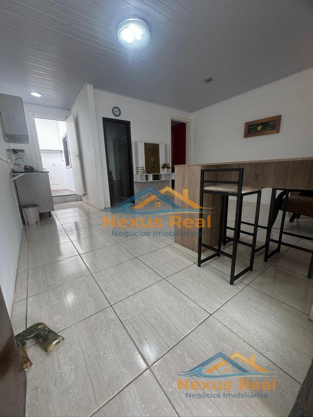 - Imóvel conta com os seguintes móveis: Fogão, pia de cozinha, armário de banheiro, bancada de jantar com 3 cadeiras, 2 poltronas, 1 roupeiro no quarto.