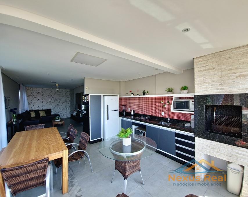 - Sacada com vista para o mar, integrada com churrasqueira e todos os utensílios;